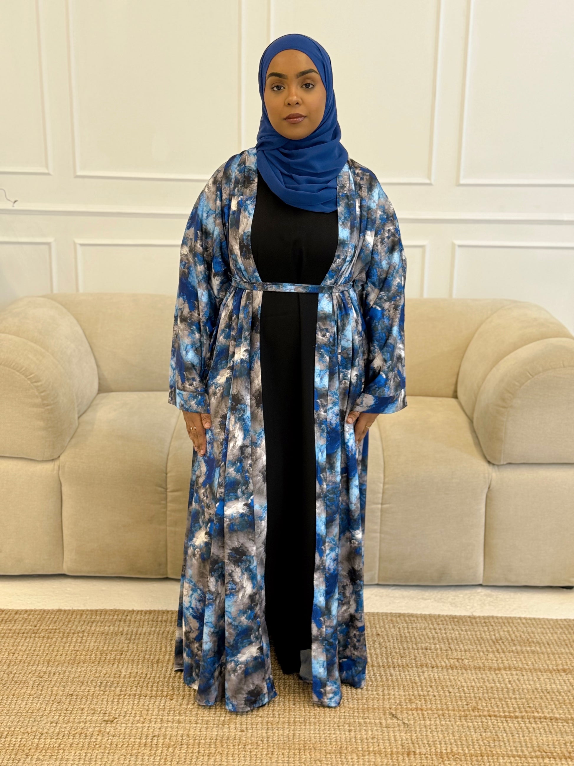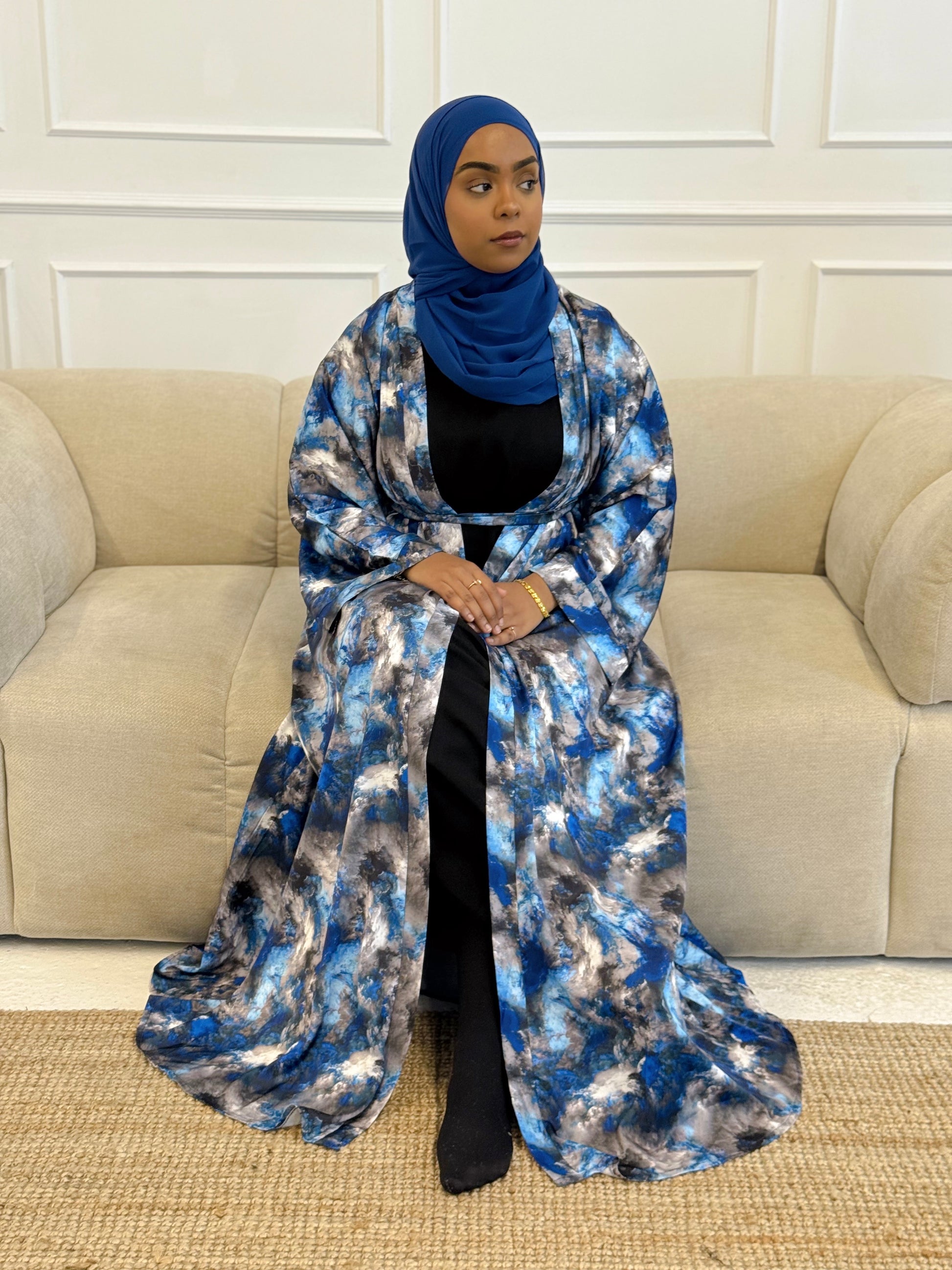 Light, flowy and effortlessly elegant. This stunning blue hued open abaya brings a fresh summer vibe.